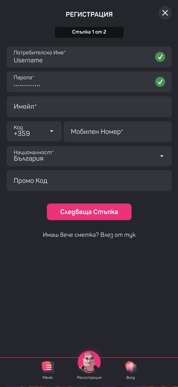 A: Просто натисни на "Регистрация" и следвай инструкциите.